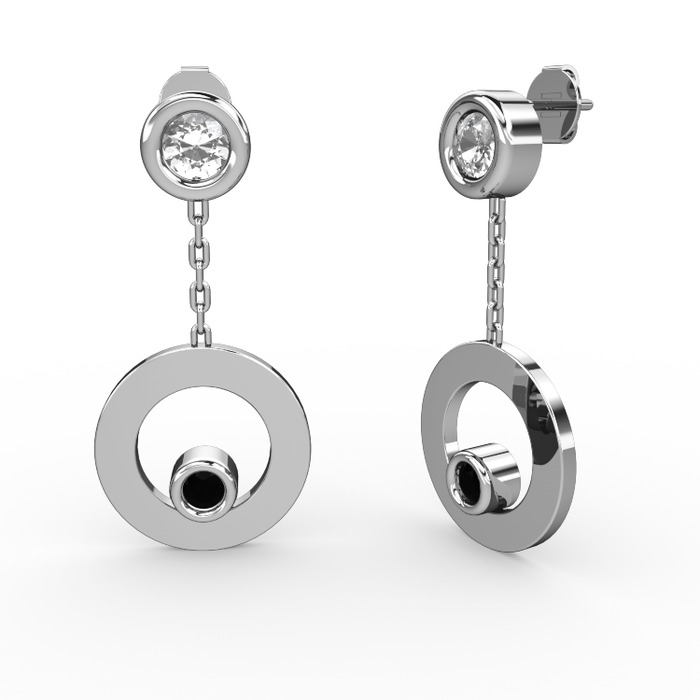 Beyaz zirkon ve siyah zirkon 18 ayar beyaz altın küpe