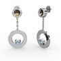Dumanlı kuvars ve akuamarin 14 ayar beyaz altın küpe