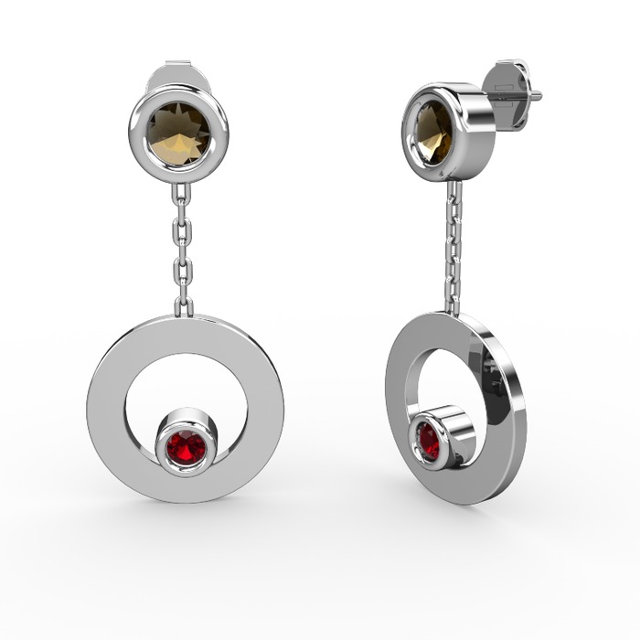 Dumanlı kuvars ve garnet 14 ayar beyaz altın küpe