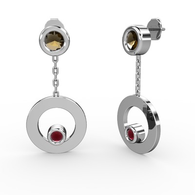 Dumanlı kuvars ve kök yakut 18 ayar beyaz altın küpe