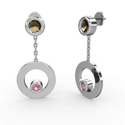 Dumanlı kuvars ve pembe kuvars 14 ayar beyaz altın küpe