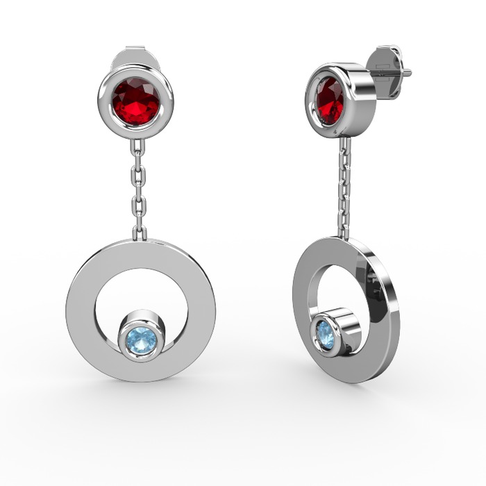 Garnet ve akuamarin 14 ayar beyaz altın küpe