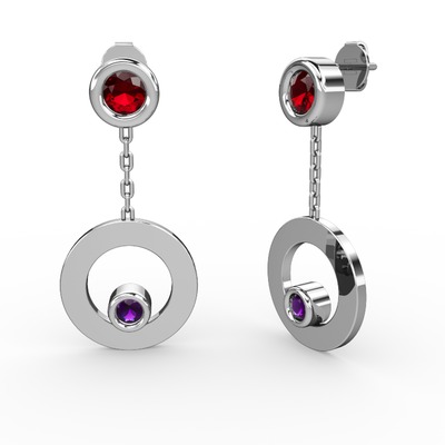 Garnet ve ametist 18 ayar beyaz altın küpe