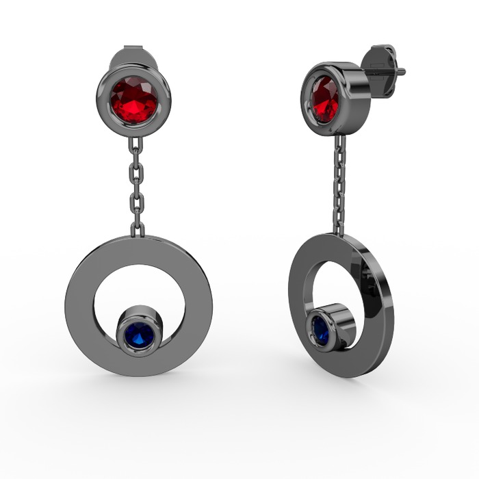 Garnet ve lab safir 925 ayar siyah rodyum kaplama gümüş küpe