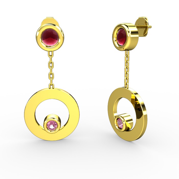 Kök yakut ve pembe kuvars 14 ayar altın küpe