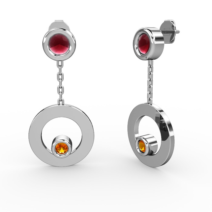 Kök yakut ve sitrin 18 ayar beyaz altın küpe