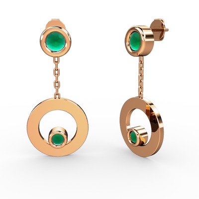 Kök zümrüt 14 ayar rose altın küpe