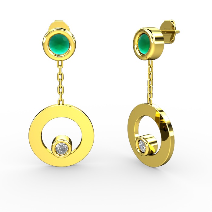 Kök zümrüt ve beyaz zirkon 14 ayar altın küpe