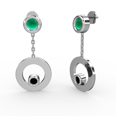 Kök zümrüt ve siyah zirkon 14 ayar beyaz altın küpe