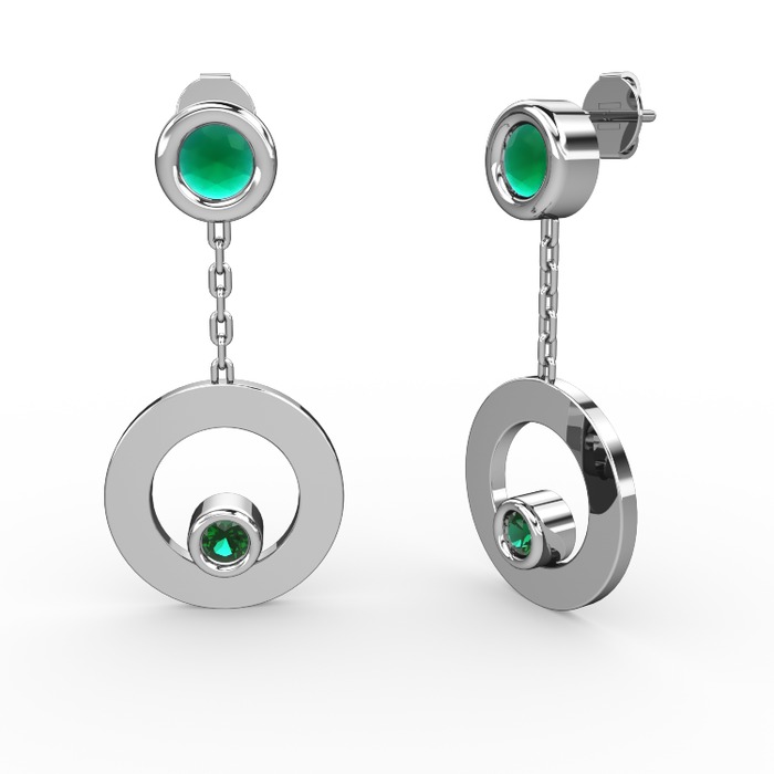 Kök zümrüt ve yeşil kuvars 8 ayar beyaz altın küpe