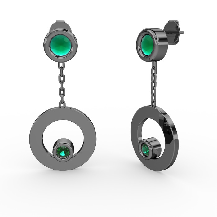 Kök zümrüt ve yeşil kuvars 925 ayar siyah rodyum kaplama gümüş küpe