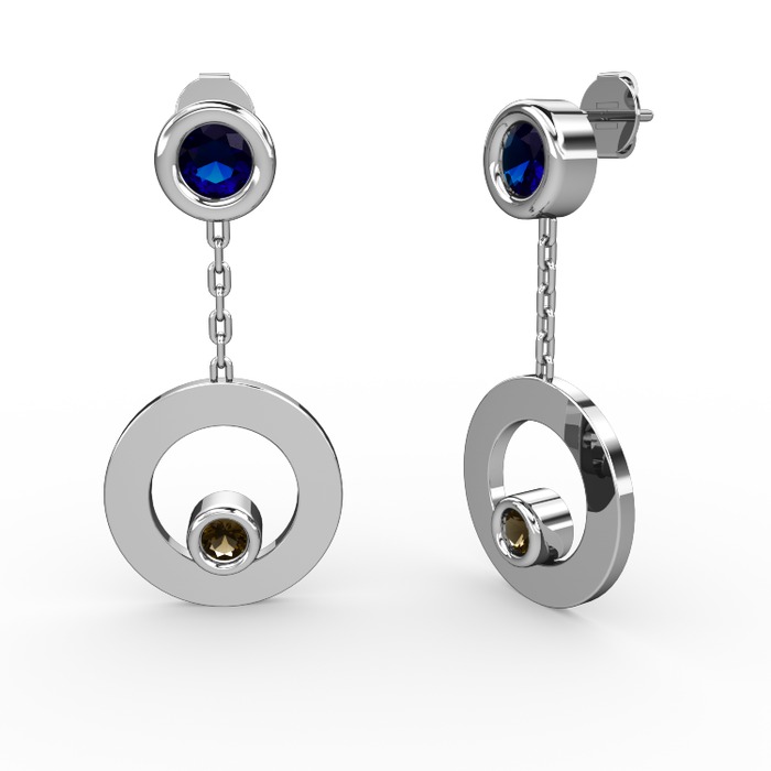 Lab safir ve dumanlı kuvars 8 ayar beyaz altın küpe