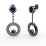 Lab safir ve garnet 925 ayar siyah rodyum kaplama gümüş küpe