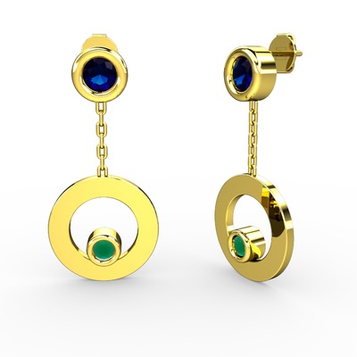 Lab safir ve kök zümrüt 14 ayar altın küpe
