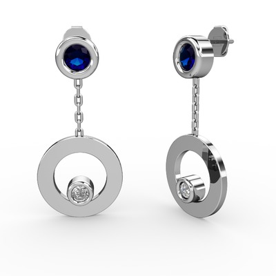 Lab safir ve swarovski 18 ayar beyaz altın küpe