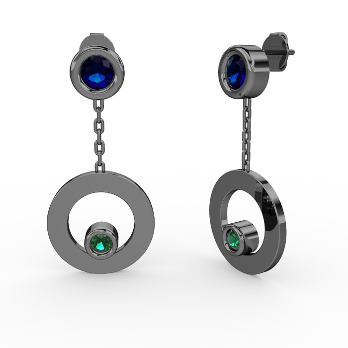 Lab safir ve yeşil kuvars 925 ayar siyah rodyum kaplama gümüş küpe