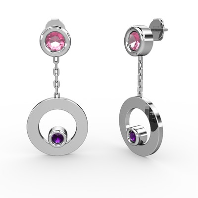 Pembe kuvars ve ametist 14 ayar beyaz altın küpe