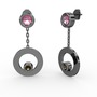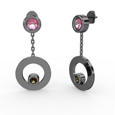 Pembe kuvars ve dumanlı kuvars 925 ayar siyah rodyum kaplama gümüş küpe