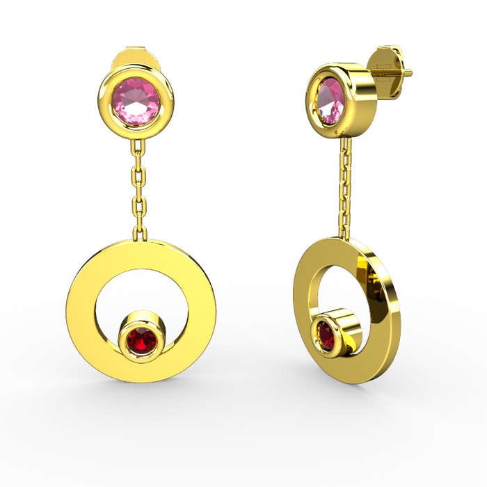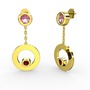 Pembe kuvars ve garnet 18 ayar altın küpe