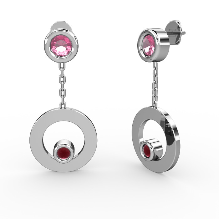 Pembe kuvars ve kök yakut 18 ayar beyaz altın küpe