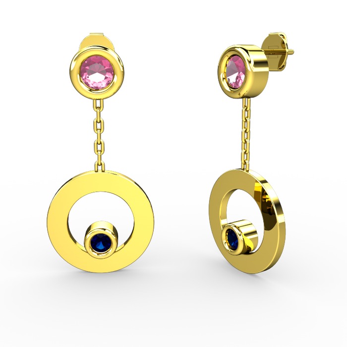 Pembe kuvars ve lab safir 8 ayar altın küpe
