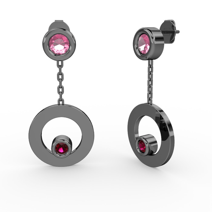 Pembe kuvars ve rodolit garnet 925 ayar siyah rodyum kaplama gümüş küpe