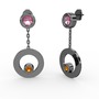 Pembe kuvars ve sitrin 925 ayar siyah rodyum kaplama gümüş küpe