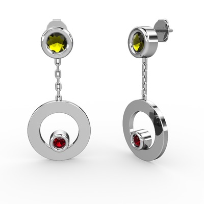 Peridot ve garnet 925 ayar gümüş küpe