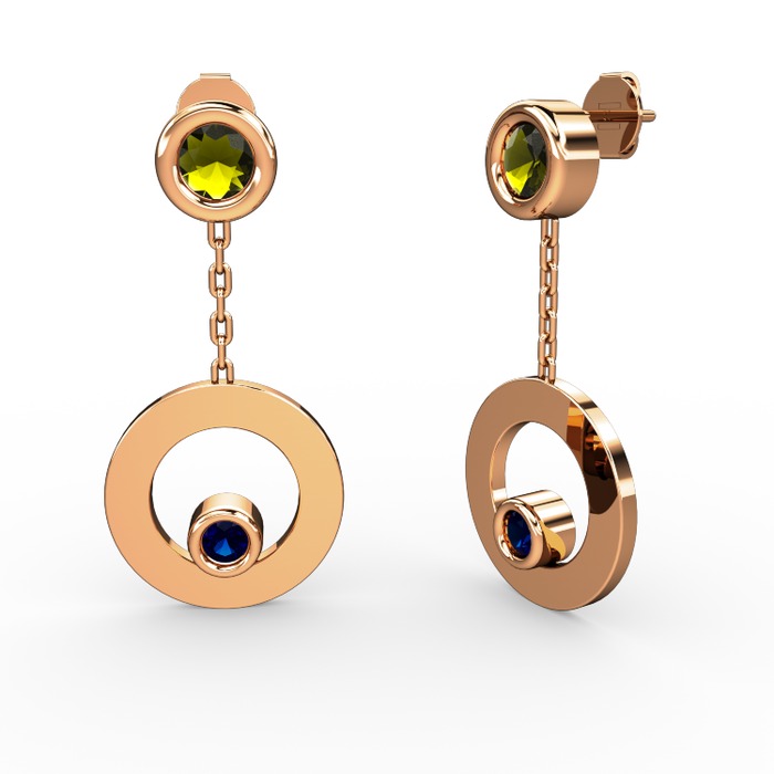 Peridot ve lab safir 8 ayar rose altın küpe