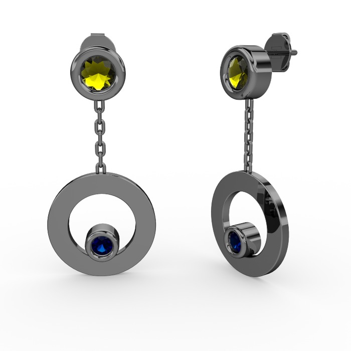 Peridot ve lab safir 925 ayar siyah rodyum kaplama gümüş küpe