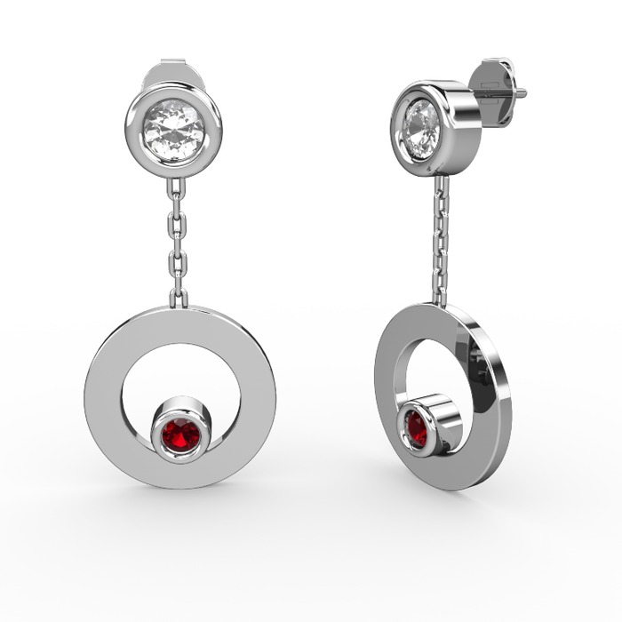 Pırlanta ve garnet 18 ayar beyaz altın küpe (0.22 karat)