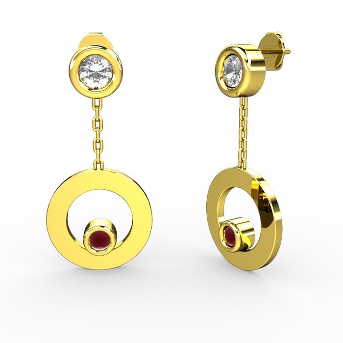 Pırlanta ve kök yakut 18 ayar altın küpe (0.22 karat)