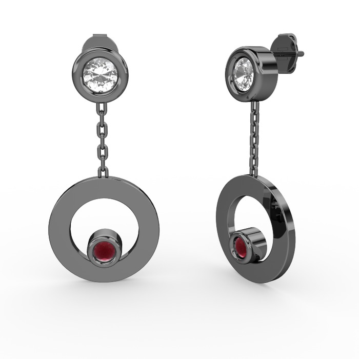 Pırlanta ve kök yakut 925 ayar siyah rodyum kaplama gümüş küpe (0.22 karat)