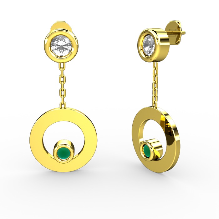 Pırlanta ve kök zümrüt 925 ayar altın kaplama gümüş küpe (0.22 karat)