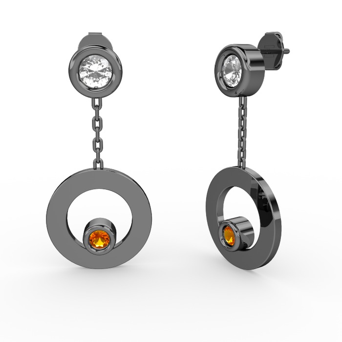 Pırlanta ve sitrin 925 ayar siyah rodyum kaplama gümüş küpe (0.22 karat)