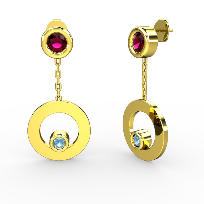 Rodolit garnet ve akuamarin 8 ayar altın küpe