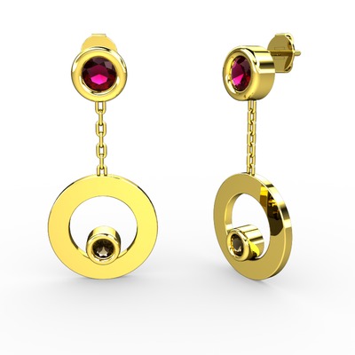 Rodolit garnet ve dumanlı kuvars 14 ayar altın küpe