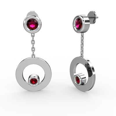 Rodolit garnet ve garnet 14 ayar beyaz altın küpe