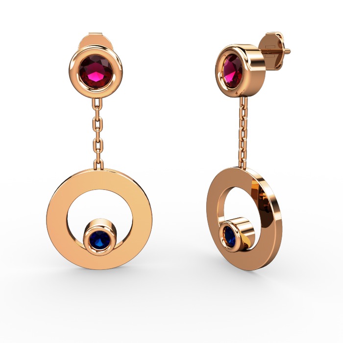 Rodolit garnet ve lab safir 8 ayar rose altın küpe