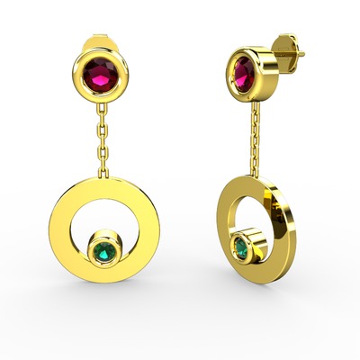 Rodolit garnet ve yeşil kuvars 14 ayar altın küpe