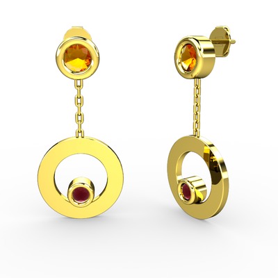 Sitrin ve kök yakut 18 ayar altın küpe