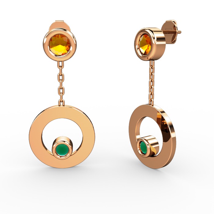 Sitrin ve kök zümrüt 14 ayar rose altın küpe