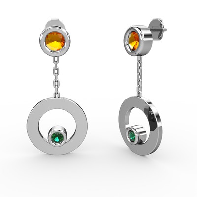 Sitrin ve yeşil kuvars 14 ayar beyaz altın küpe