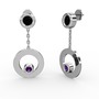 Siyah zirkon ve ametist 8 ayar beyaz altın küpe