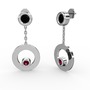 Siyah zirkon ve rodolit garnet 14 ayar beyaz altın küpe