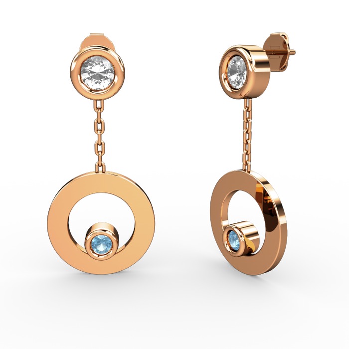 Swarovski ve akuamarin 8 ayar rose altın küpe