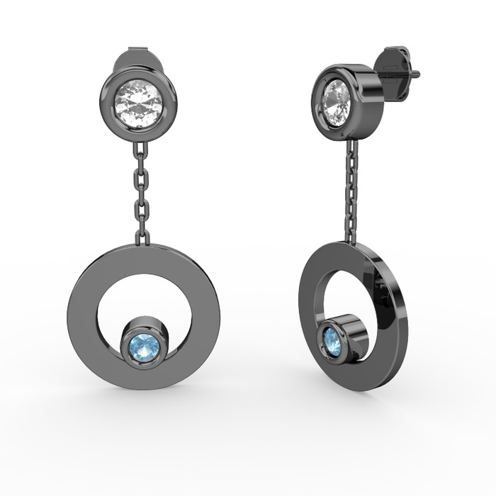 Swarovski ve akuamarin 925 ayar siyah rodyum kaplama gümüş küpe