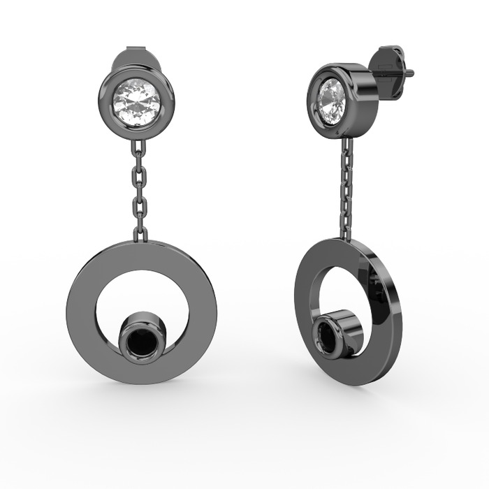Swarovski ve siyah zirkon 925 ayar siyah rodyum kaplama gümüş küpe