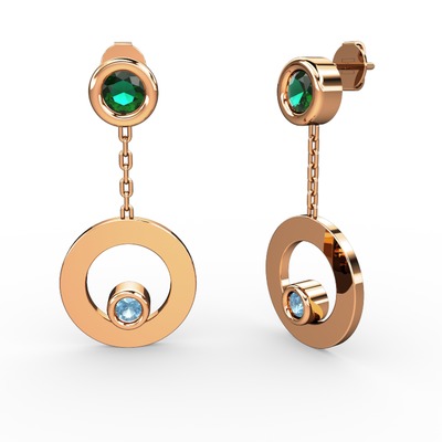 Yeşil kuvars ve akuamarin 925 ayar rose altın kaplama gümüş küpe