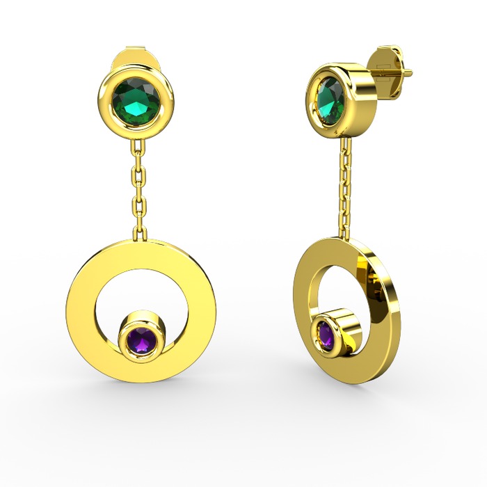 Yeşil kuvars ve ametist 925 ayar altın kaplama gümüş küpe